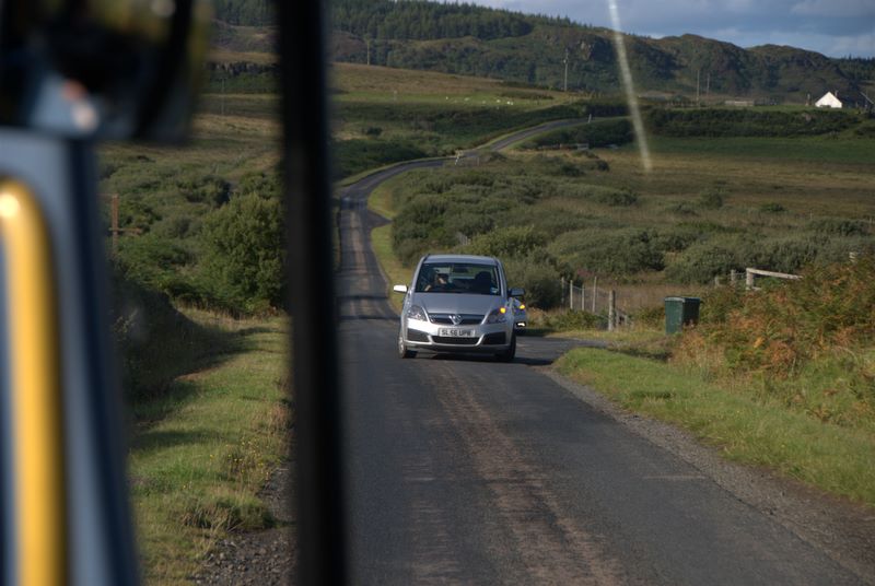 Must be a North American rental car, trying to pull over to the right (and really annoying the bus driver)