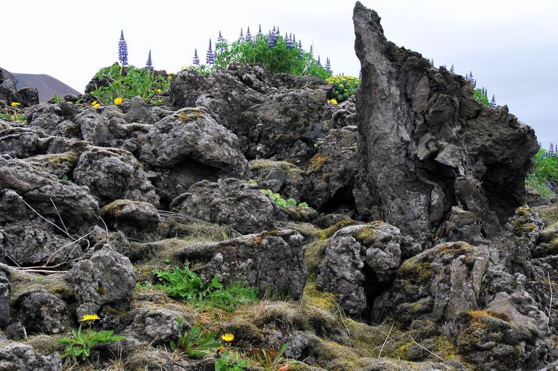 The water sprayed to stop the lava advancement created a strange landscape