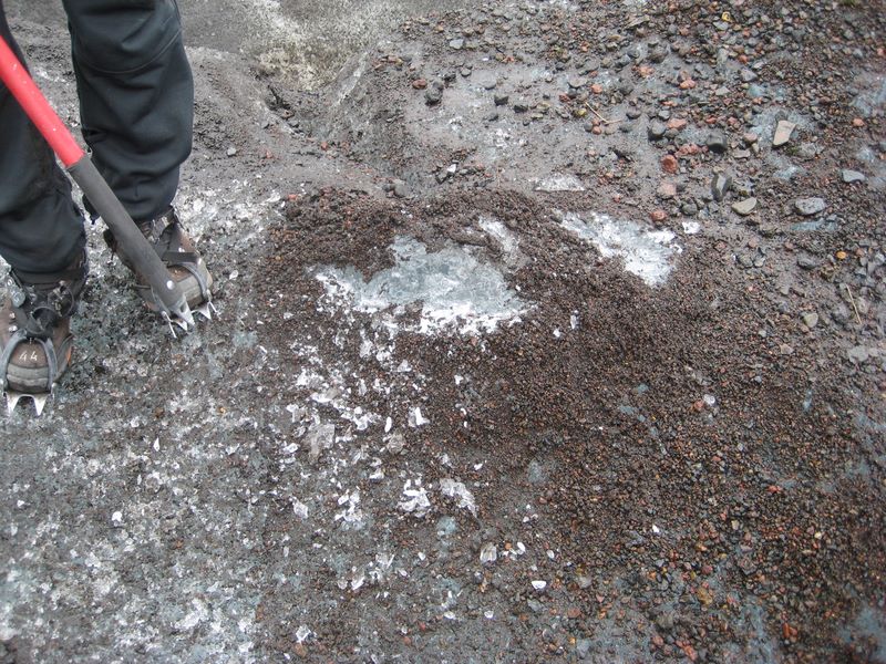 Under the thin covering of ash is ice
