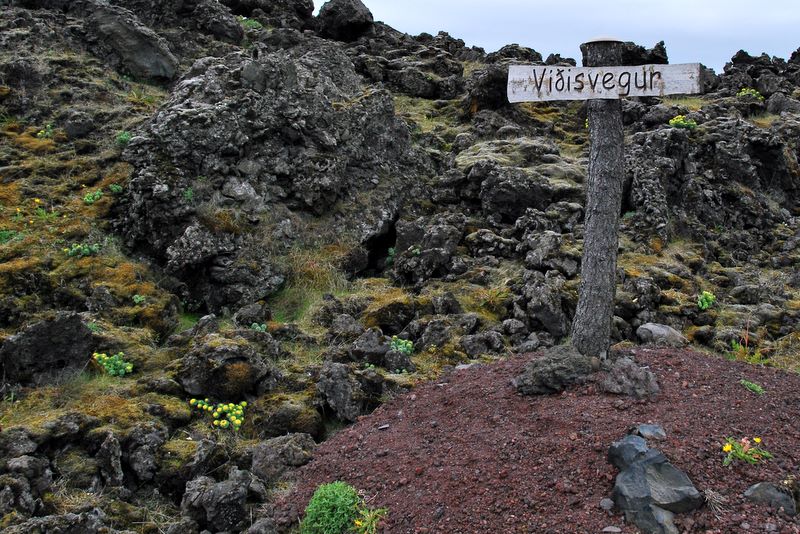 The sign marks the location of a site buried in the lava